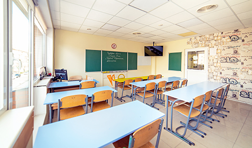 Будівля п’ятиповерхова, загальна площа 1750 м2. Кількість навчальних приміщень — 26. Будинок обладнаний власною системою опалення та має резервну систему електропостачання. Поверх -1 використовується як укриття під час повітряних тривог. Тут розташовані їдальня, спортзал, роздягальні, медичний кабінет та інші допоміжні приміщення. Укриття сертифіковане, загальна площа 350 м2. Територія школи перебуває під цілодобовою охороною. Загальна площа території — 0,12 га.